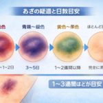 でも一般的には、あざの色が変わっていくのは回復に向かう過程の一つと言われています。