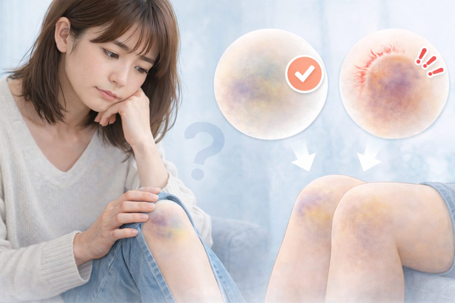 「膝にあざがあるけど、ぶつけた覚えがない…これって大丈夫?」