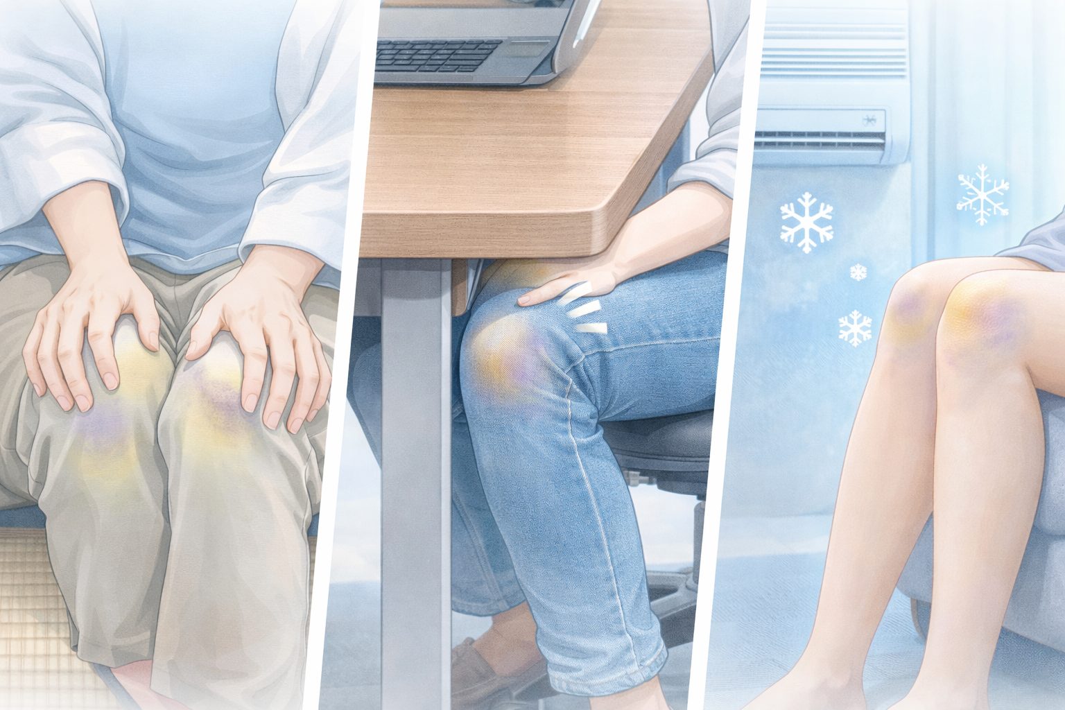 正座・しゃがみ込み・デスクワーク中に膝を机に当てる癖など、無意識のうちに繰り返される軽い刺激。