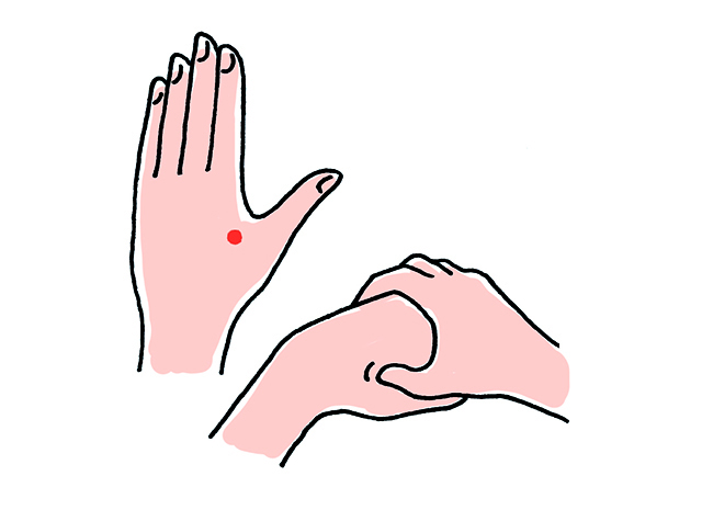 押し方としては、5秒〜10秒ほどゆっくり押して、少し離す。この流れを数回繰り返すのが一般的とされています。