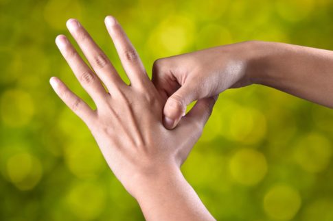 手の甲、人差し指と中指の骨の間あたりにあるツボです。腰痛の即効ツボとして最も知られているポイントの一つと言われています。