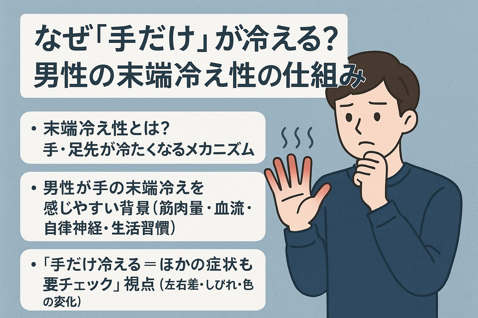 #末端冷え性 #男性冷え性 #手の冷え対策 #血流改善 #生活習慣見直し