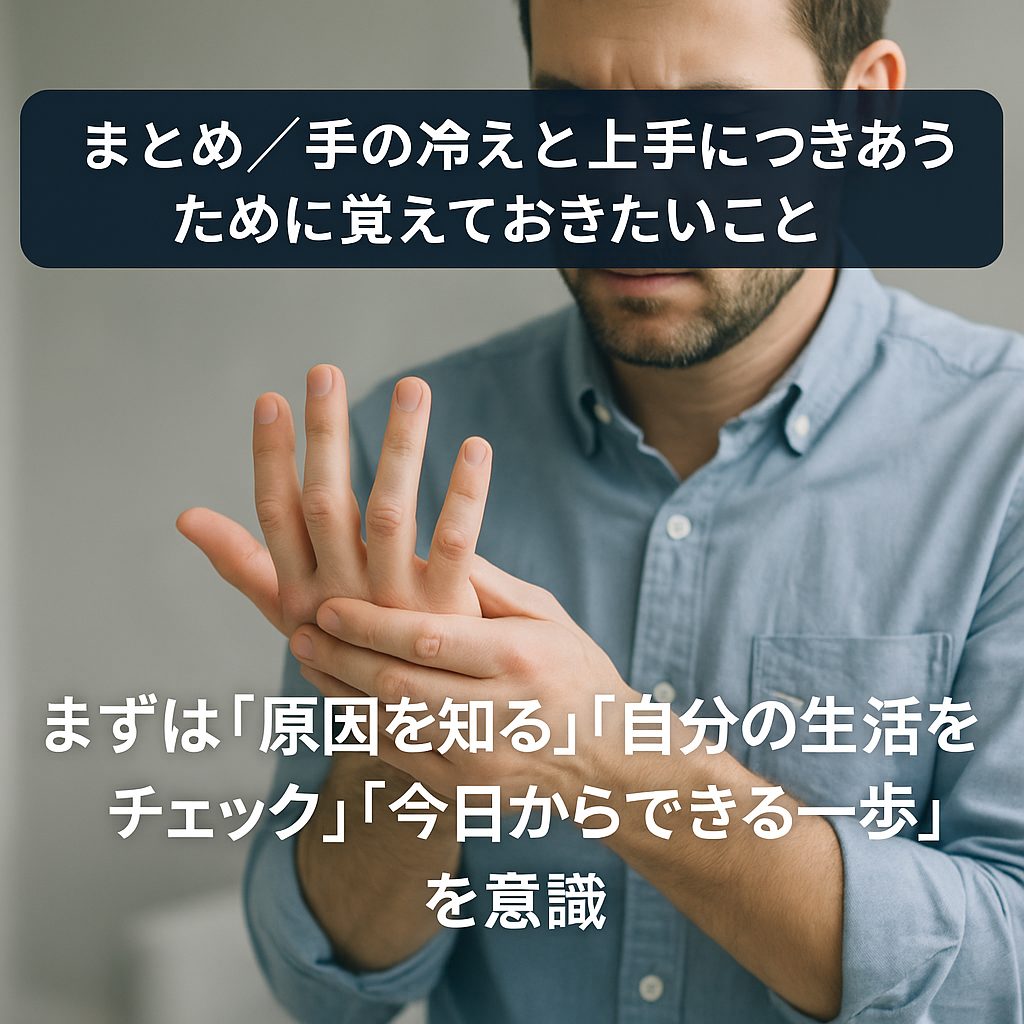 季節を問わず、自分の手先の温度や感覚をチェックするだけでも、体の変化に気づくきっかけになります。冷えと上手につきあうことは、健康管理の一部と考えておくのが賢明です。