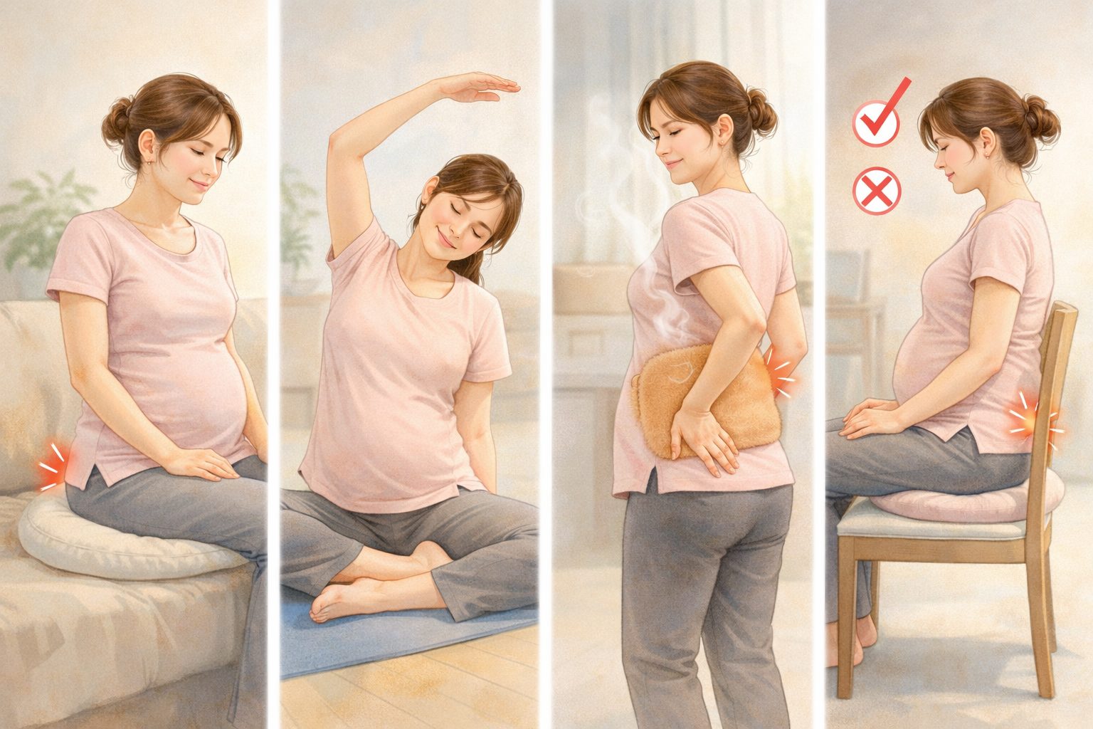 そう感じている方は多いと言われています。臨月の尾てい骨痛は、日常のちょっとした工夫で負担を和らげられるケースもあるとされています。ここでは、無理のない範囲で取り入れやすいセルフケア方法を整理してみましょう。