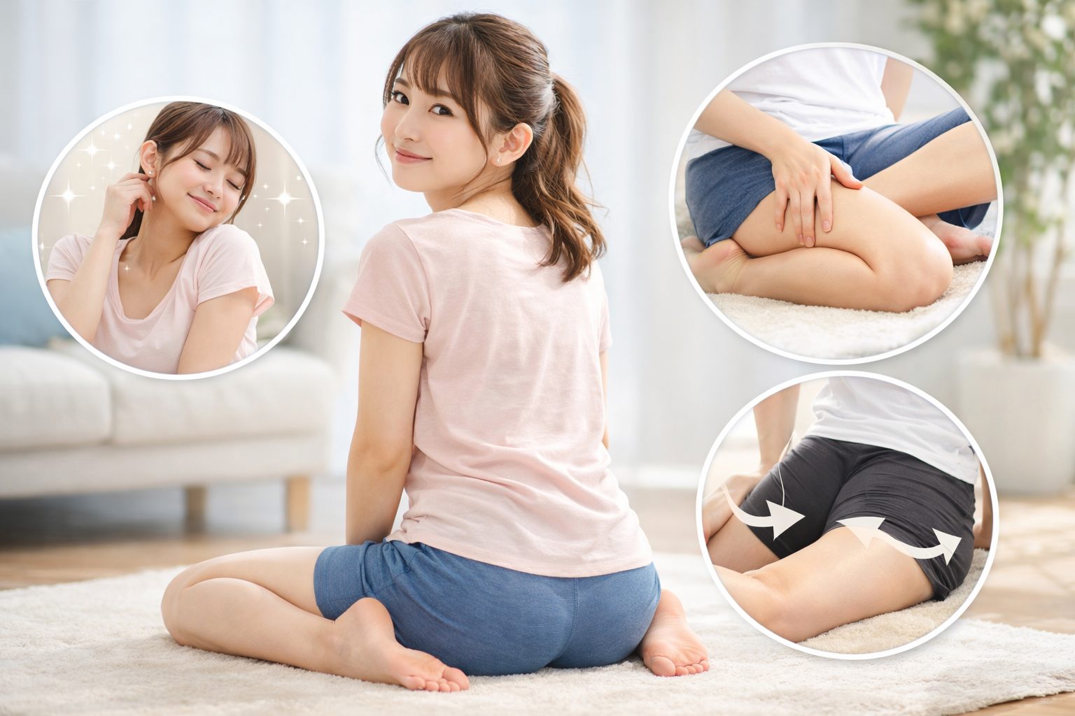 女の子座り 後ろ では、股関節を内側にひねり、太ももやお尻まわりの筋肉が伸ばされる姿勢になります。
