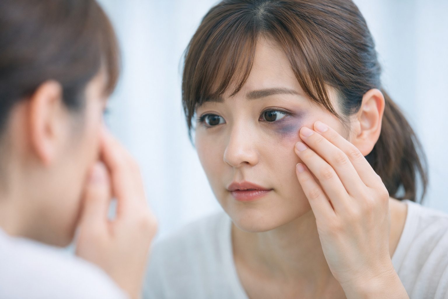 こうした不安を感じる方は少なくありません。目の周りの打撲で起こる内出血は、目そのものではなく皮膚の下で起きている出血だと言われています。顔は皮膚が薄く、毛細血管が多いため、軽い衝撃でも血管が傷つきやすい部位です。