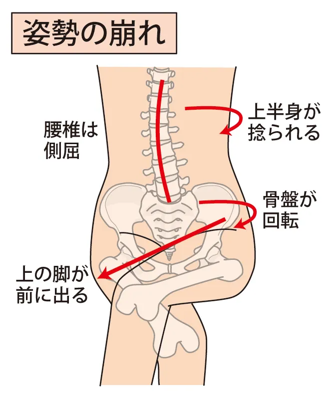 - 足を組む・片足重心などのクセ