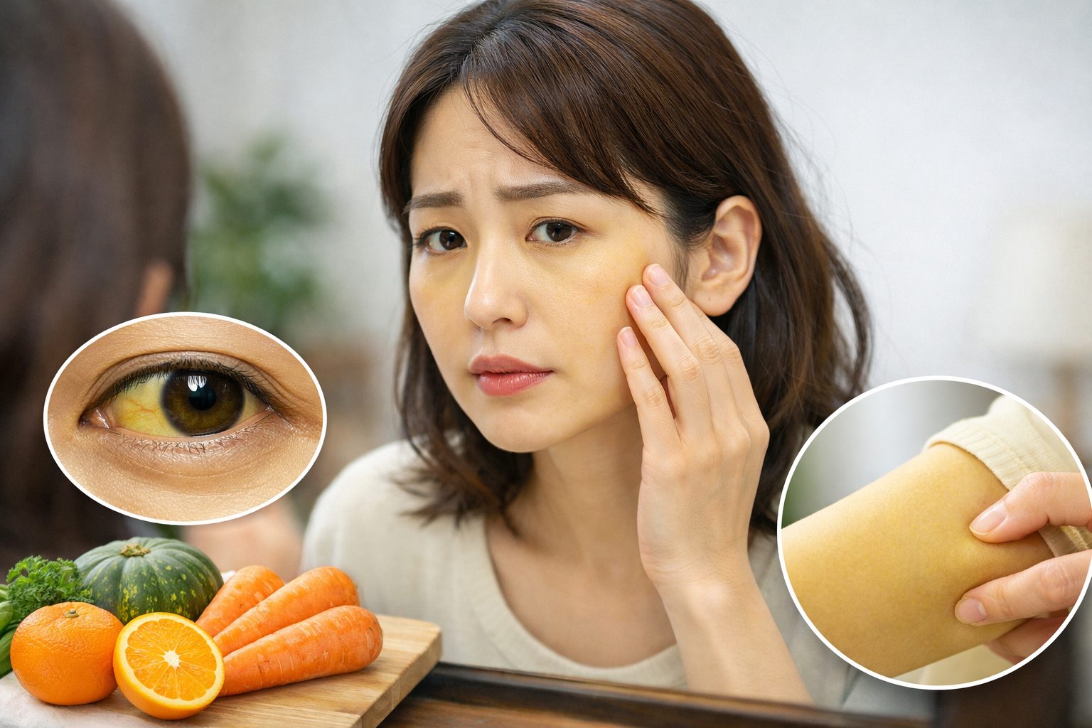 カロテンは体内でビタミンAに変換される栄養素ですが、摂取量が多い状態が続くと、皮膚の角質層に蓄積し、黄色みとして現れることがあると言われています。