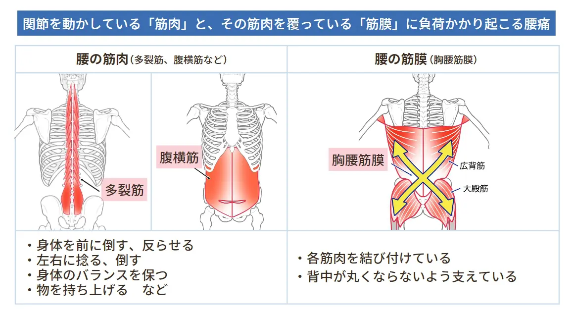 歩行できるから軽症と思われがちだが、腰の筋肉・関節に負担・炎症がある状態
