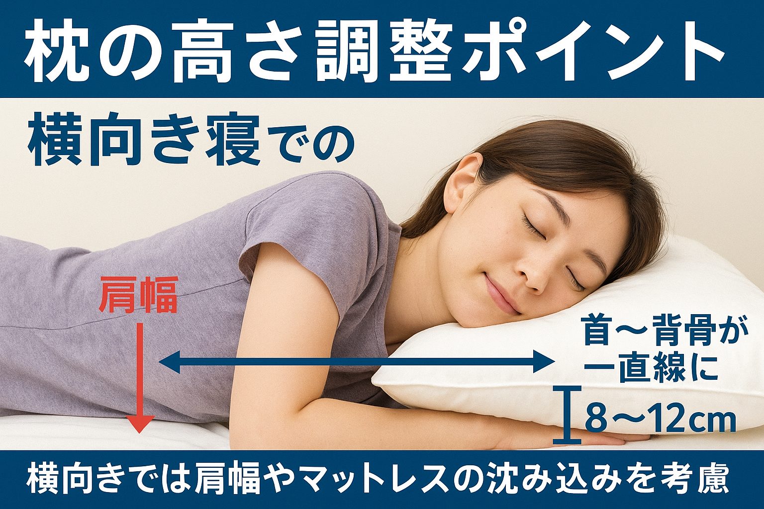 横向き寝では、首から背骨ができるだけ一直線になる状態が理想とされています。そのため、一般的には「8〜12cm前後の高さ」が目安になると言われています。