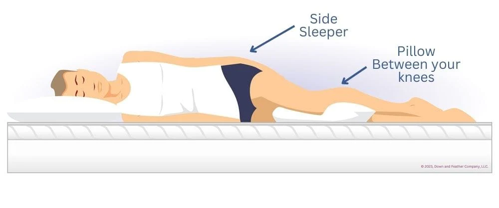 両膝の間にクッションを挟むと股関節の内旋や骨盤ねじれが減ります。神経ラインの伸張が抑えられると言われています。