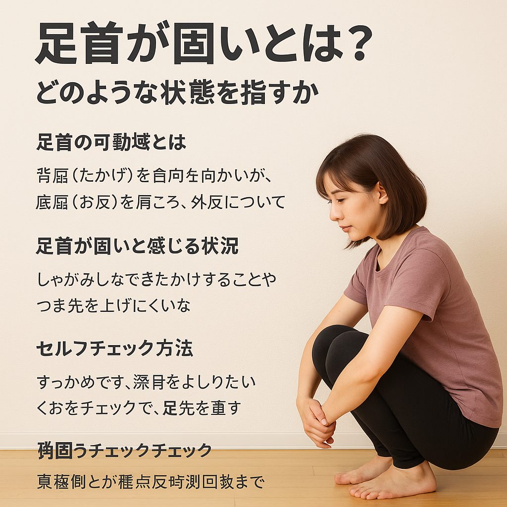 「足首が固い」が具体的に何を意味するかをクリアにする(可動域制限、動きづらさ、チェック法など)