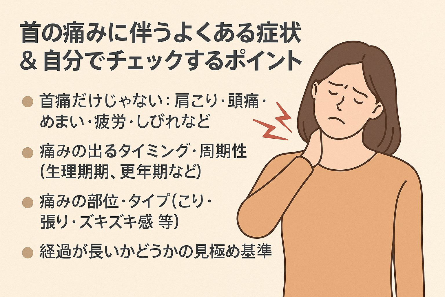 首の痛みに伴うよくある症状 & 自分でチェックするポイント