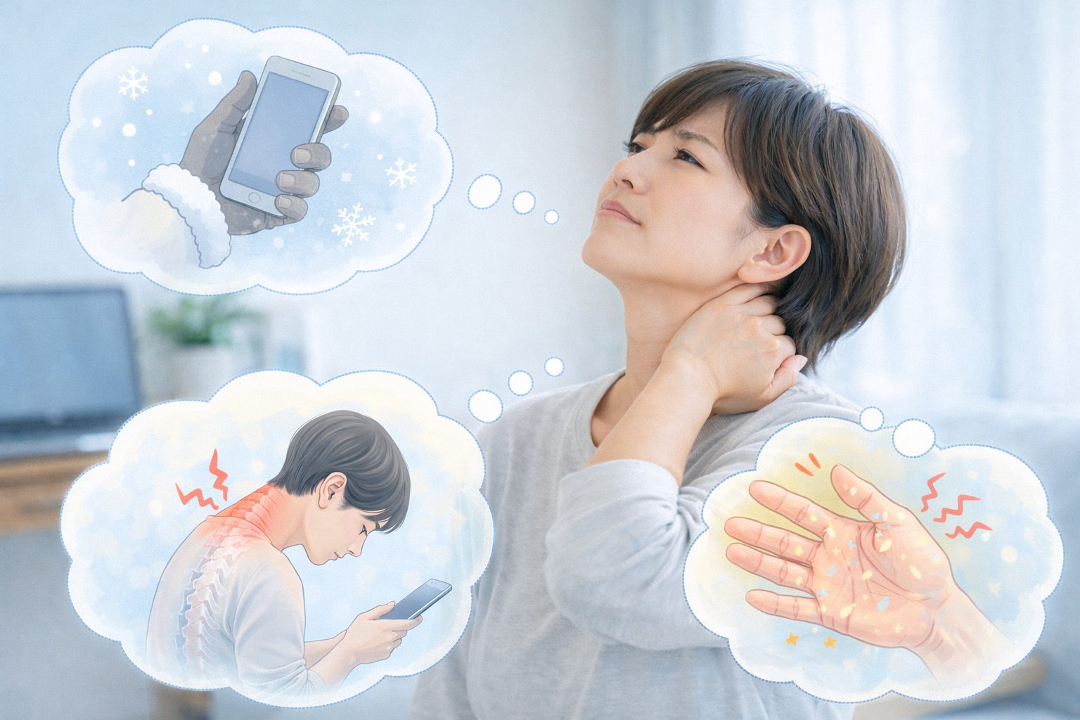 「寒い日は特につらい」「長時間スマホを見たあとに首が固まる」