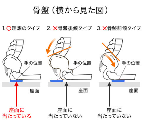 ・座るときの意識すべき骨盤の向き・背筋・膝・足首の角度