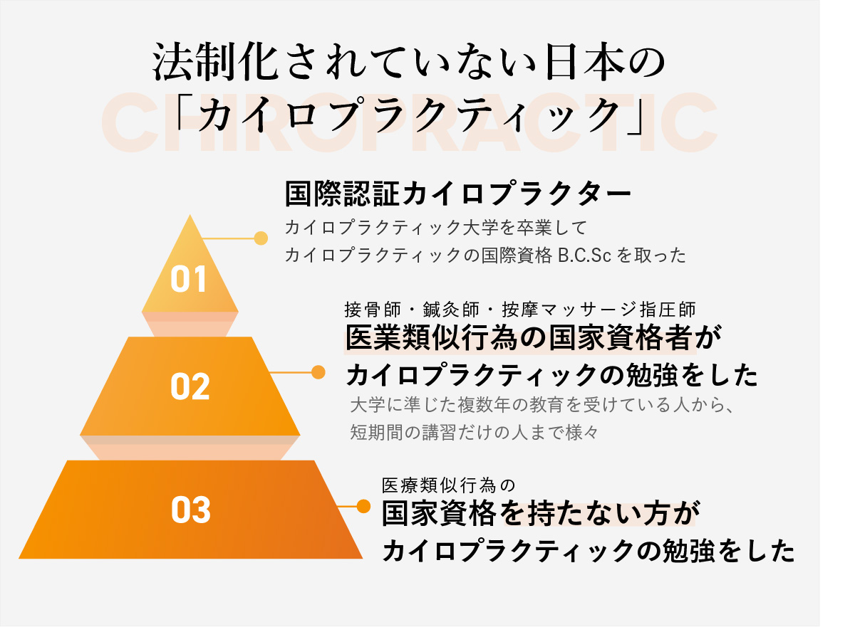 カイロプラクティックの事故を語るうえで、避けて通れないのが資格制度の違いです。