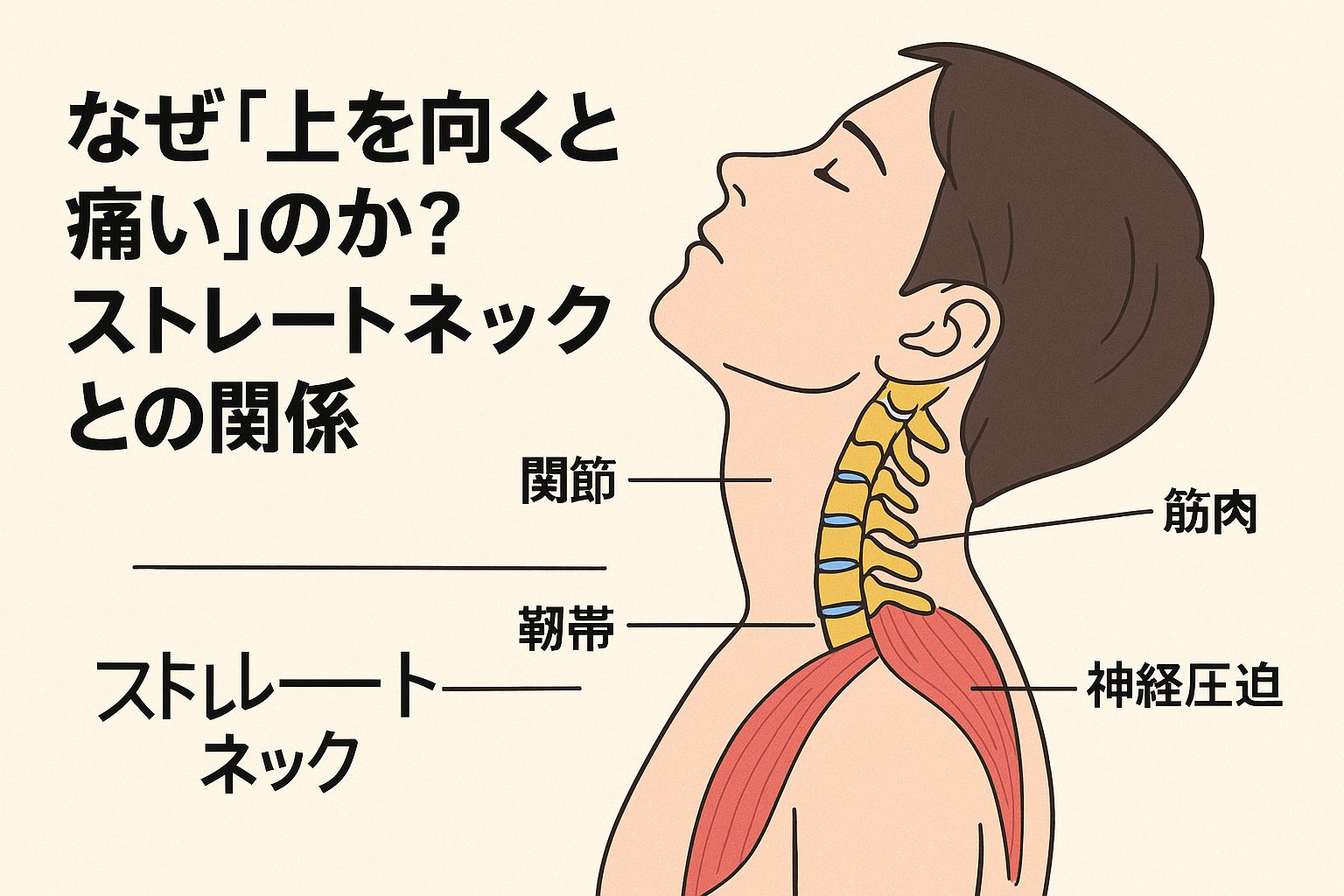 1. なぜ「上を向くと痛い」のか?ストレートネックとの関係痛みが起きる仕組みを解説。ストレートネックによる負荷、関節・靭帯・筋肉へのストレス、神経圧迫の可能性など