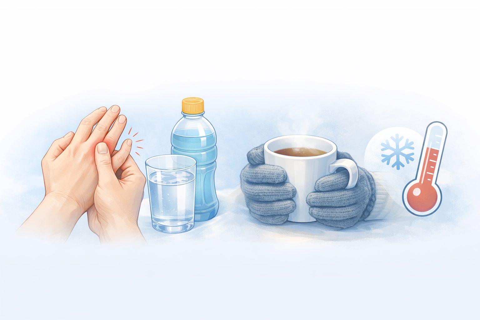 お湯で軽く手を温めるのも、無理のない対処のひとつです。