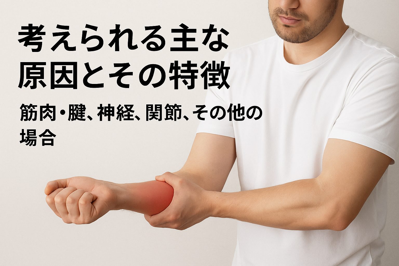 腕の内側が痛むとき、背景にはいくつかの要因が関わっていると言われています。単なる筋肉の疲労から神経や関節の問題まで幅広く考えられるため、それぞれの特徴を知っておくことが大切です。以下では代表的な原因を整理して紹介します。