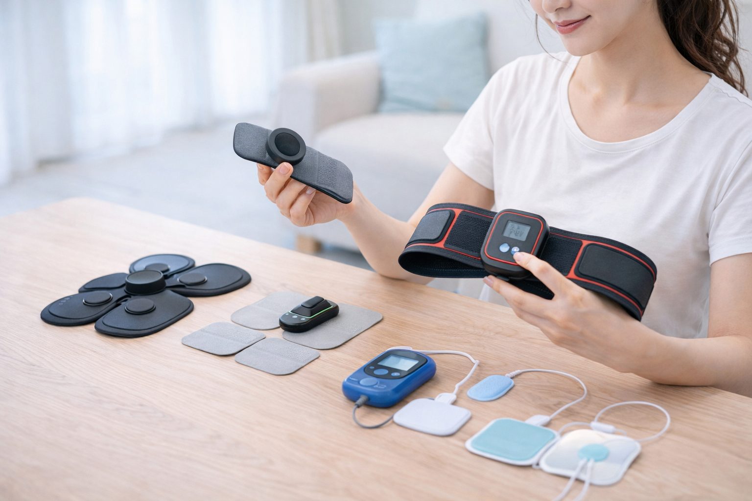 家庭用EMSには、ベルト型・パッド型・シート型など、さまざまな形状があります。腹部を中心に使いたい人と、腕や脚にも使いたい人とでは、選ぶタイプが変わってきます。