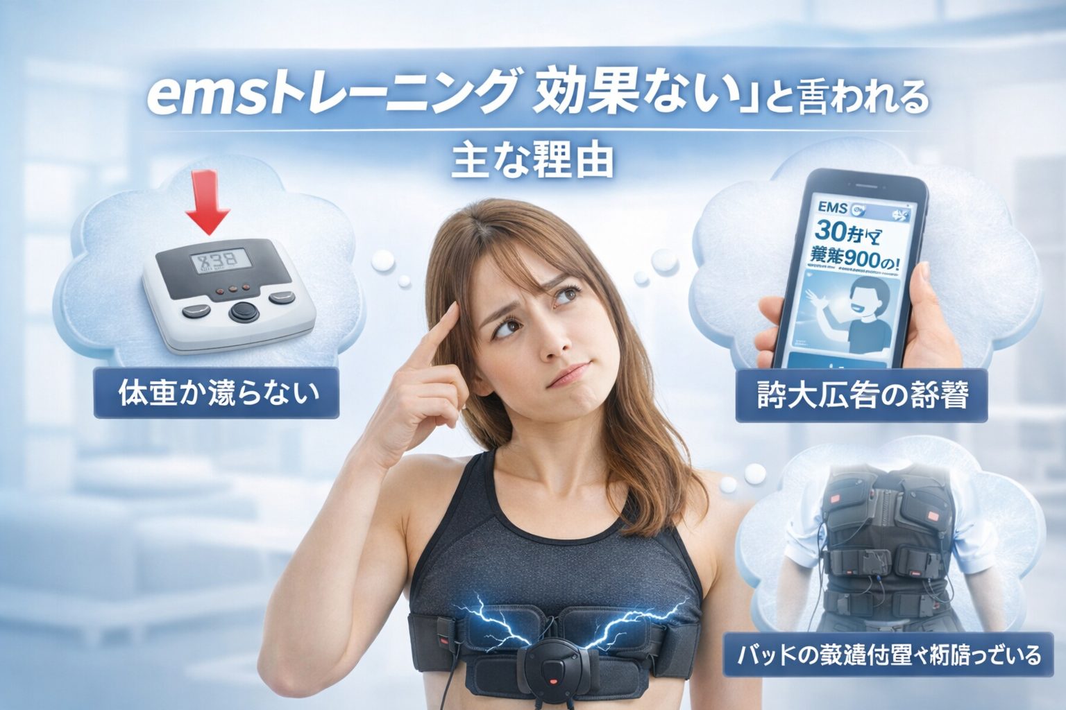 検索している方の多くは、こんな疑問や不安を感じているはずです。実際、口コミや体験談を見てみると「思ったほど変化を感じなかった」「期待と違った」という声が一定数見られます。では、なぜ emsトレーニング 効果ない と言われてしまうのでしょうか。